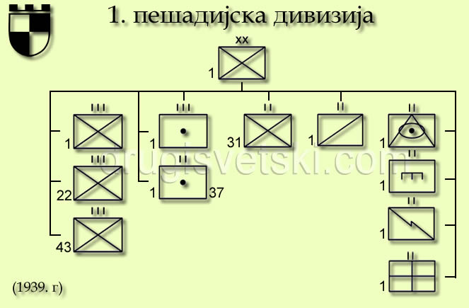 Шема организацијско-формацијске структуре 1. пд, 1939. године